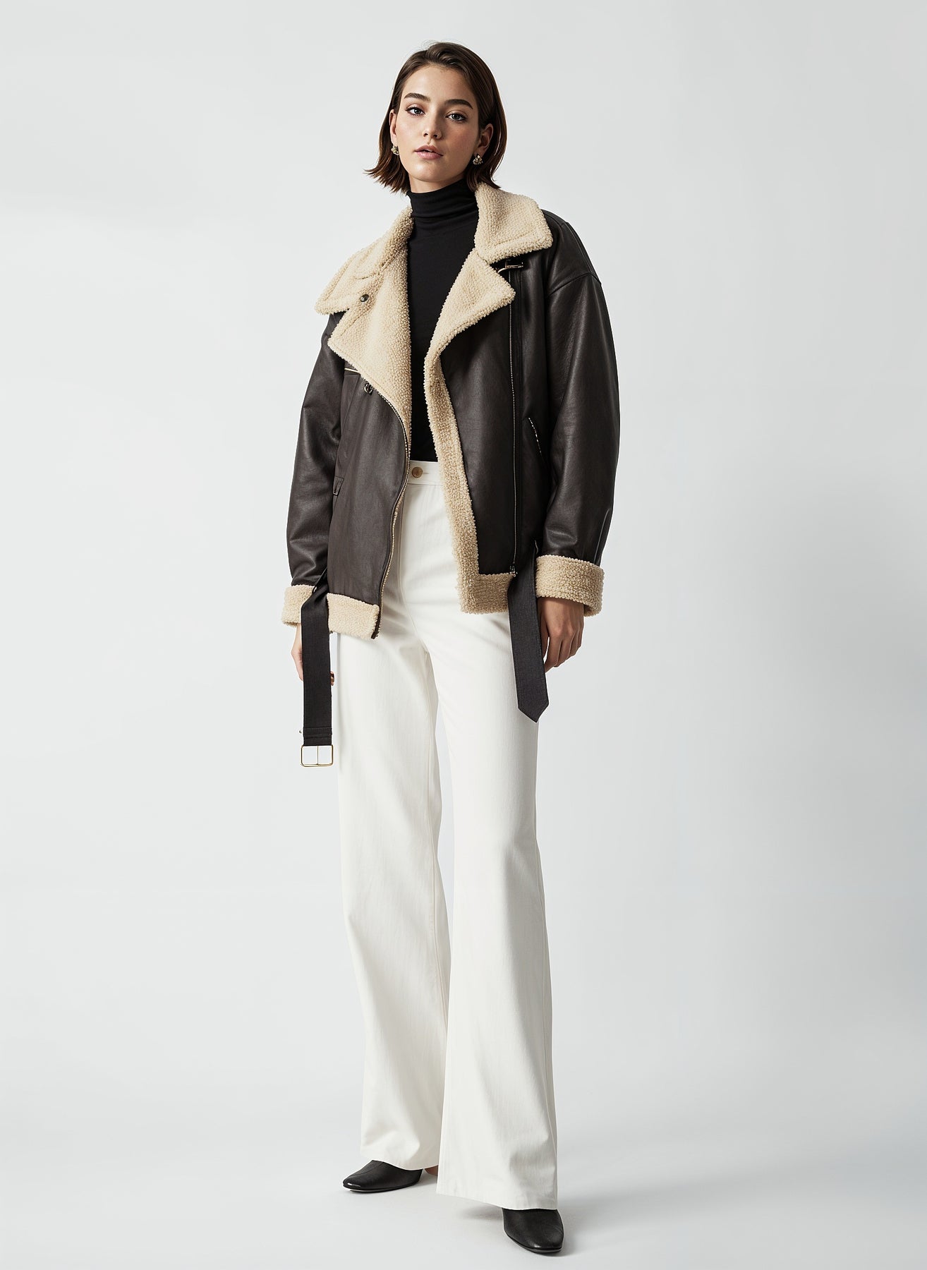 Discover the incomparable Mila Flight Jacket – your essential statement piece in brown that combines luxurious warmth with an edgy biker aesthetic. This jacket, as seen in the third picture, is a fashion masterpiece that will envelop you with a touch of adventurous spirit. Perfect for the modern trendsetter looking for a piece of clothing that will both stand out and stay put.